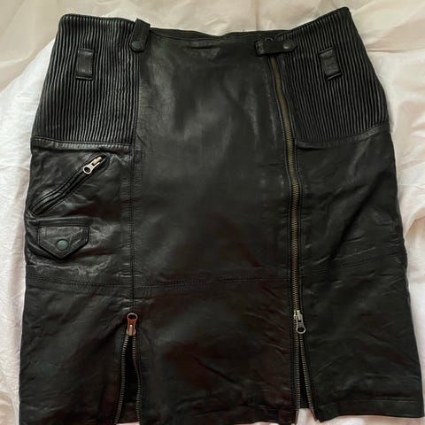 Flot nederdel i blødt skind. Er desværre for stor til mig nypris ca. 1600. Brugt få gange.