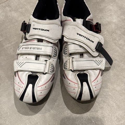 Specialized Riata cykelsko i størrelse 42 dame. Skoene er sorte med gule detaljer og har tre velcrolukninger for justerbar pasform. Designet til cykling med stiv sål og klikpedalsystem. Har aldrig været brugt