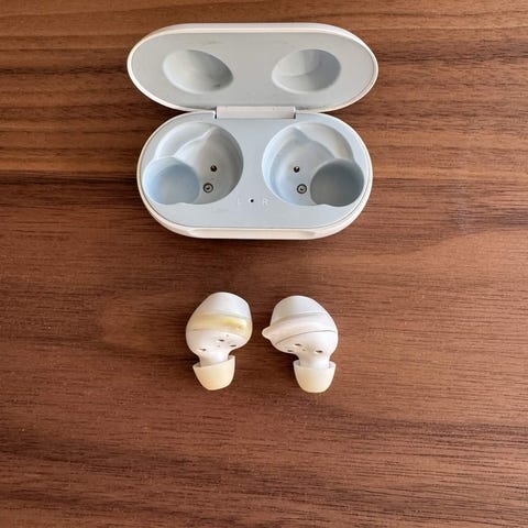 Case til Lenovo Earbuds L1 har lidt wear and tear men fungerer 100% som de skal.