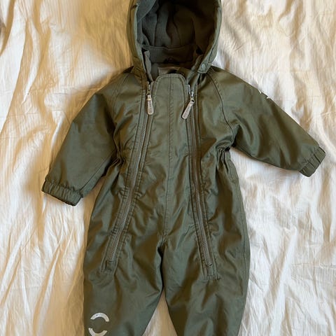 Dejlig varm mikk-line flyverdragt. Brugt meget lidt sidste vinter, nyvasket i neutralt vaskemiddel. Har blødt fleecefor på indersiden, reflekser på ydersiden, aftagelig hætte.