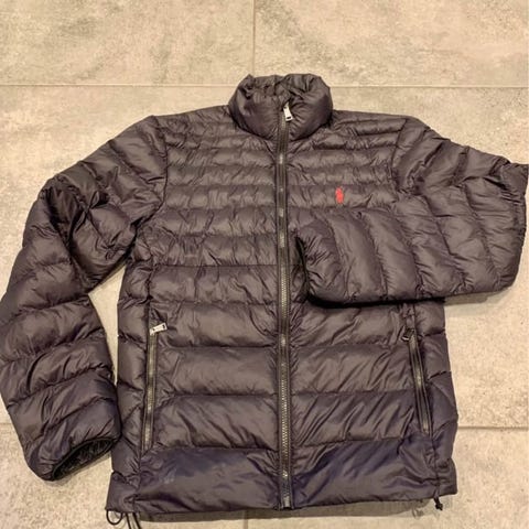 Ralph Lauren Polo Jakke i beige farve, størrelse L til herrer. Jakken har en klassisk design med lynlås foran, to lommer og en kontrastfarvet krave. Materialet er holdbart og velegnet til udendørs brug.