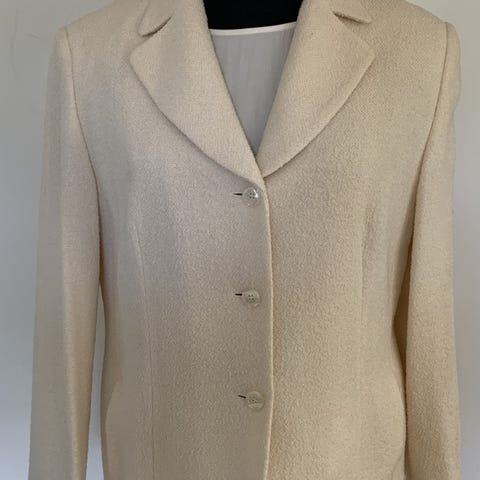 Gerry Weber Beige Blazer til kvinder i størrelse 40. Jakken er fremstillet af 84% polyester og 16% polyamid med en foring af 100% acetat. Jakken har to knapper foran og to lommer med klap. Farven er beige, og designet er klassisk med reverskrave.