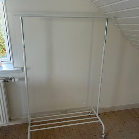 Ikea rigga tøjstativ, med hjul og kan justeres i højden