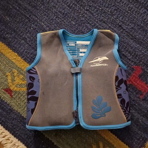 Svømmevest med fine prikker. Op til 20 kg. Lynlås foran