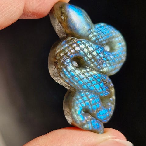 Ulvehoved udskåret af labradorit. Jeg sælger ud af min samling, så tjek min profil for flere spændende ting!