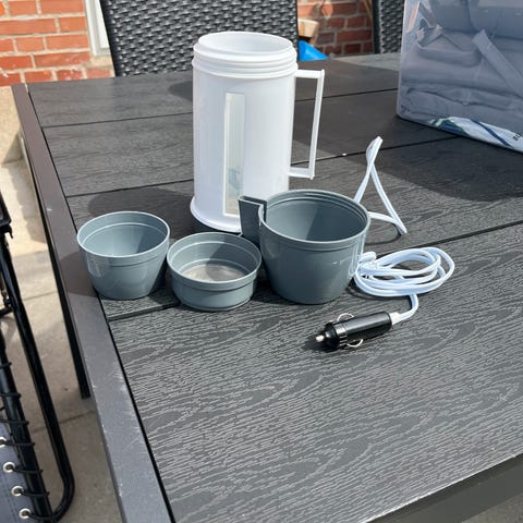 Lille elkedel der kan sættes i cigarettænderen i din bil. (12v)