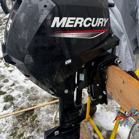 Fabriksny ( DEMO ) Mercury 5 Hk SAIL POVER lang ben , stor propel og ladeudtag ER PÅ LAGER TIL OMG. LEVERING. KUN STÅET I UDSTILLING Aldrig startet.