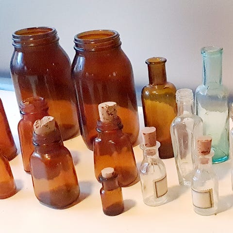 Glas, Retro pilleglas/flaske, Retro pilleglas/flaske - højde ca. med prop ca. 9 cm. - fremstår i pæn brugt stand uden skår eller afslag.