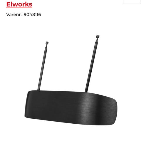Dette er en loop-antenne, designet til at modtage radio- eller fjernsynssignaler. Antennen består af en firkantet ramme og en lang ledning med en konnektor i enden. Den er lavet af plast og er kompakt med dimensionerne 13x11 cm. Den bruges typisk som en indendørs antenne til at forbedre signalmodtagelsen i hjemmet.