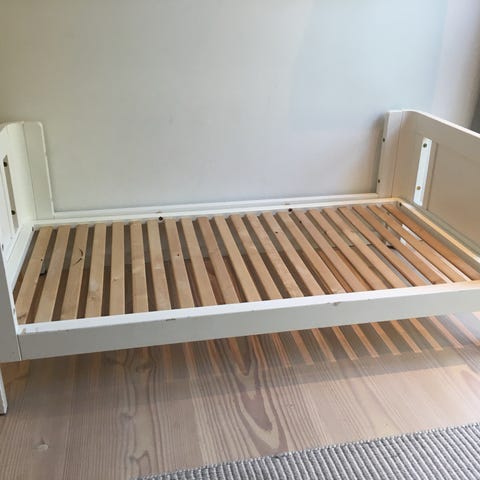 Incl god madras + 2 x lagen. I fin funktionel stand med bruge spor. Udvendige mål: 76x145x55 (bxlxh)