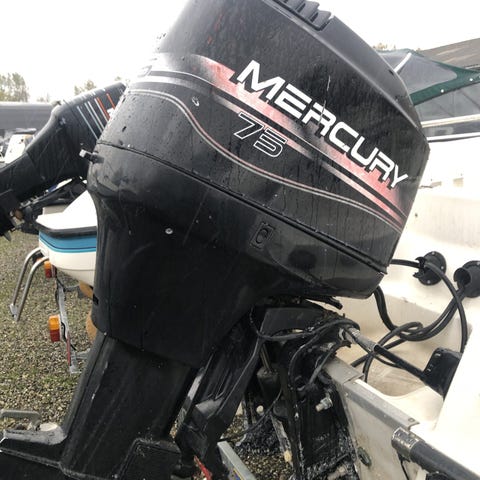 Data: Brugt 2-takts påhængsmotor årgang 1988 Mercury 75ELPT 75hk 4 cylindre på række el-start og power trim. Udstyr: Fjernbetjening, timetæller og omdrejningstæller, 24 lt. tank med slange.