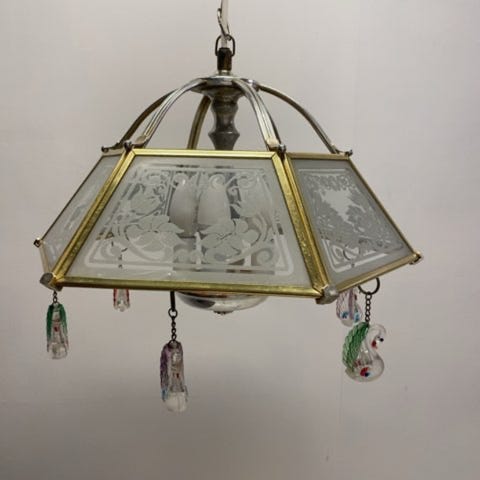 Flot lampe i glas med skærm i metal.