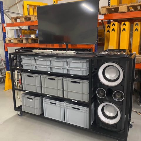 Søjler udført i rustfrit stål, samt 2 glasplader til video & DVD