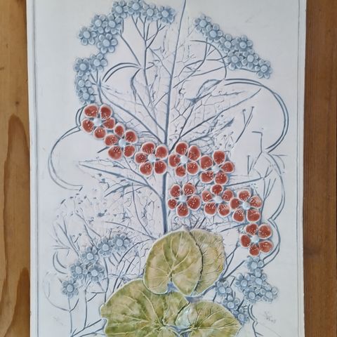 Særdeles smuk og sjældent set svensk håndlavet og håndmalet keramik relief af Jie Gantofte