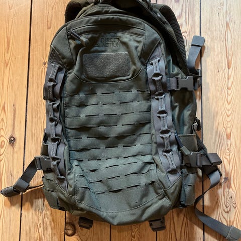 Den er lidt brugt,men er i perfekt stand.Den har udvendig lomme og en store indvendig lomme til en laptop.Rygsækken har justerbare stropper, en stor hovedlomme med snøre og klaplukning med spænder, samt en frontlomme med spænder. Den er designet til både funktionalitet og komfort med polstrede skulderstropper og åndbart rygpanel.
