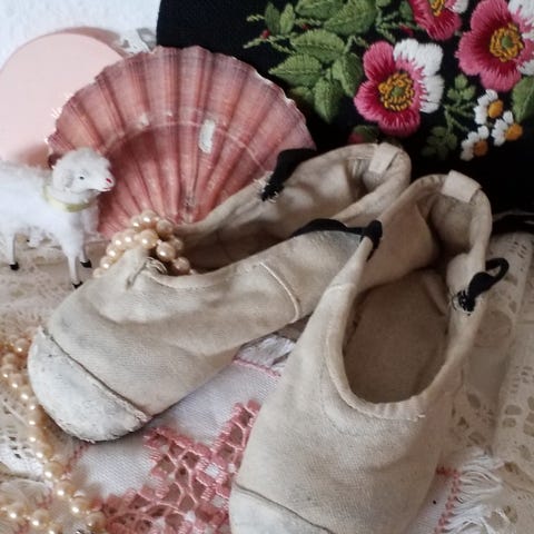 Yndige brugte tåspidssko fra Det Kgl. Teater, kun til dekoration; Søde balletsko, slidte med patina ,tåspidssko med bindebånd kan ses & hentes i Esbjerg Midtby / Kan sendes med Dao til pakkeshop