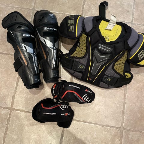 RBK 23CM/9 Ishockey Albuebeskyttere i str. XXS, designet til børn med en højde på 120-145 cm (4'0"-4'10"). Beskytterne er fremstillet i materialer egnet til ishockey og giver beskyttelse til albuerne under sporten.