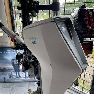 Mercury Avator 7.5e med 916 W effekt og en 1 kWh. Den elektriske påhængsmotor fra Mercury er velegnet til mindre både der ikke skal op og plane. Den har et batteri der kan tages ind og ud med et knaptryk uden at skulle tilslutte kabler. Motoren svarer i moment/effekt til en 3,5 hk Benzinmotor.