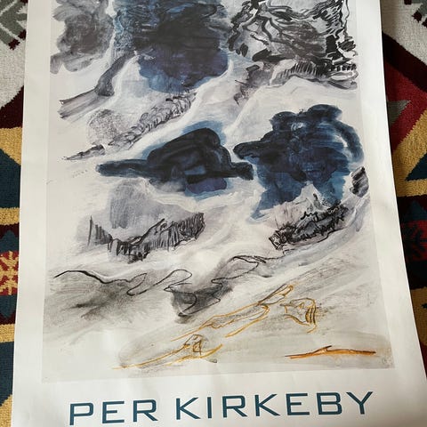 Kalender med 12 offsettryk efter gauacher af Per Kirkeby fra Læsø sommeren 2002. Trykt i original størrelse 82 x 58 cm.