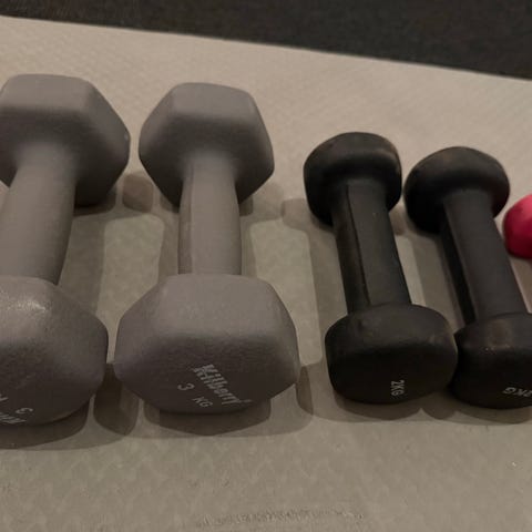 Zumba håndvægte - Sveltus håndvægte sæt med vægte i intervallet 1-3 kg. Farverne er lilla og grøn. Materialet er lavet til træning og styrkelse af overkroppen. Velegnet til både mænd og kvinder.