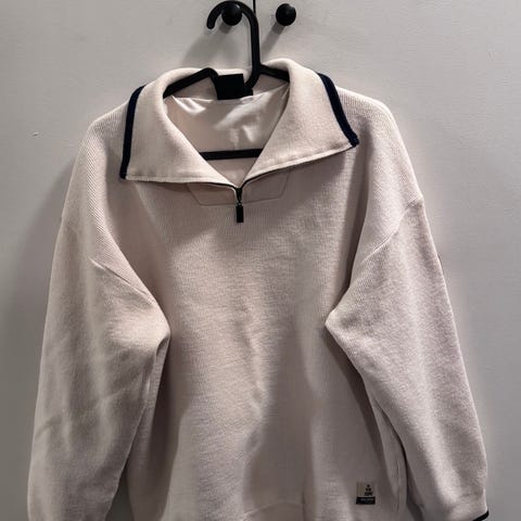 Golftrøje fra Under Armour i marineblå med frisk rødorange og lynlås, str. large - i meget pæn stand