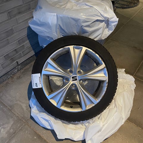 Sælger et sæt originale Seat 17" alufælge (modelnr. 5F0601025B) med Nokian WR D3 vinterdæk i størrelsen 225/45 R17.