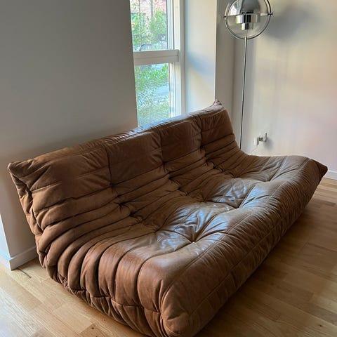 Sælger smuk Ligne Roset Togo 3 personers sofa med tilhørende puf i cognac farvet kernelæder. Klassisk vintage model med nyt betræk, som blev lavet for cirka 5 år siden. Fremstår i rigtig god stand. Dog med enkelte misfarvninger fra jeans. Dette er ikke forsøgt renset.