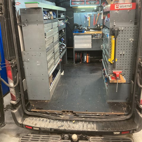 Wurth Reoler til varevogn, har siddet i Ford Transit. Med skuffer, kasser og udtrykkelig træplanke til montering af skruestik. Mål på den lille er H. 137 cm, B. 111 cm, D. 27 cm. 3000 kr. Den store H. 135 cm, B. 167 cm, D. 38 cm. 4000 kr. Sælges samlet for 6000 kr.