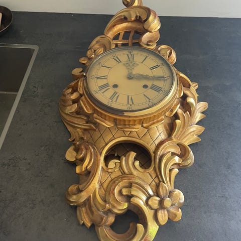 Vægur, Vintage, Fint træ væg ur i form af en måne . Det virker fint . Måler 33 cm I højden og 22cm i bredden