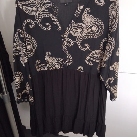 Tunika, Studio Only, str. XS, Sort/hvid, 100% polyester, Næsten som ny, Flot lang tunika i sort/hvid med knap luk øverst. 100% polyester. Pris er fast