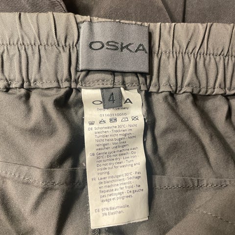 Oska bukser med lommer og lynlås. Gråternet mønster