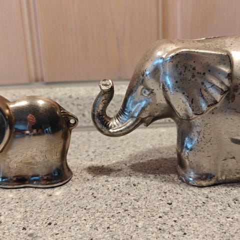 Porcelæn., Ikke mærke., 1950, Et par meget gl.elefanter.