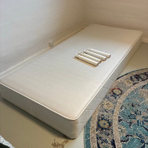 IKEA madras med målene 90x200 cm i hvid farve. Madrasser er fremstillet med materialer egnet til enkeltsenge og passer til standard enkeltsengsrammer.