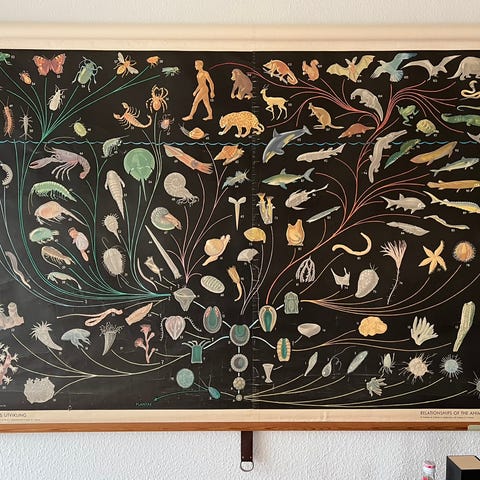 Schulwandkarte Botanisk Vægplakat med illustration af forskellige planter og naturmiljø. Plakaten måler ca. 105 cm i højden og 91 cm i bredden. Selve trykket er 80 cm bredt. Det har træruller i enderne. Materialet er en form for papir, og plakaten er designet til undervisningsbrug eller dekorativt formål. Motiv “den næringsfattige sø”. I vore dage en mangelvare i naturen.