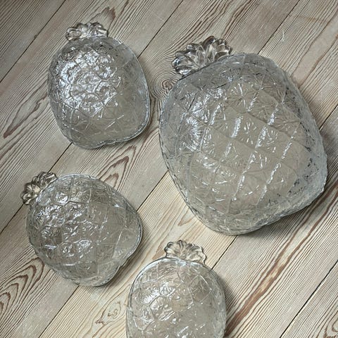 skål på fire fødder med mønster af ananas, Smuk glas skål på fire fødder med mønster af ananas i hvert hjørne