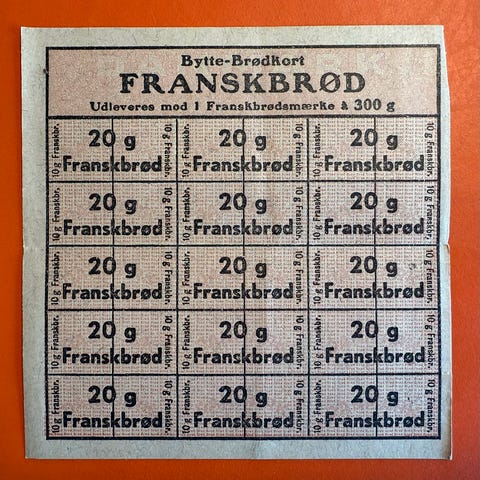 En god blanding af rationeringsmærker og noget der minder om penge og frimærker, sælges til fornuftige bud.