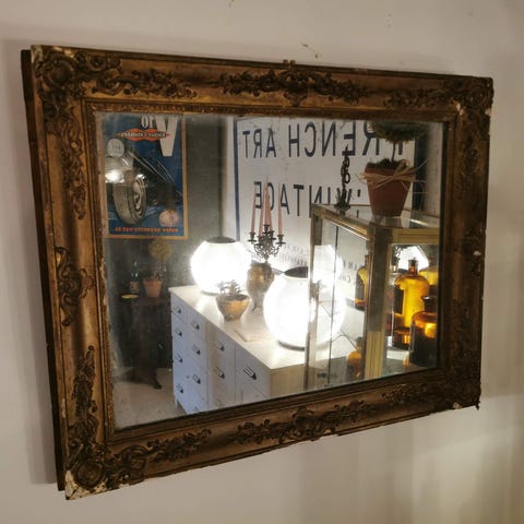 FLOT ANTIK FRANSK industrispejl, købt hos Fil De Fer. Spejlet er sjældent, lavet i massivt træ og har den helt rigtige patina.