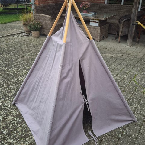 Teltet er let at hænge op og stålringen i bunden sikrer at den holder formen.
