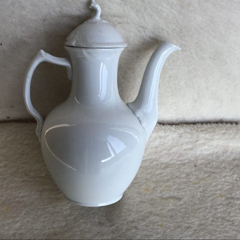 1. sortering kaffekande med låg til stellet Empire, 23 cm høj. Uden skår eller revner.