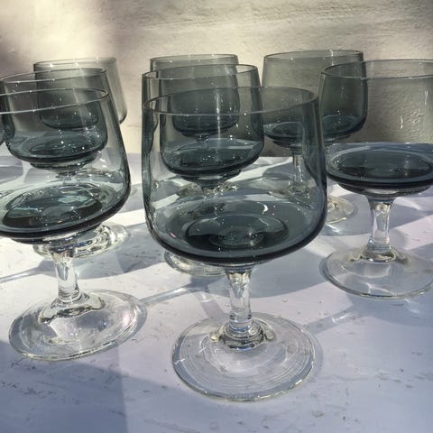Røgfarvede Atlantis likørglas fra Holmegaard. Højde ca. 6 cm. Har 11 stk i alt. Prisen er pr. Stk. afhentes i Esbjerg c. (Har også snapse og cognacglas!)