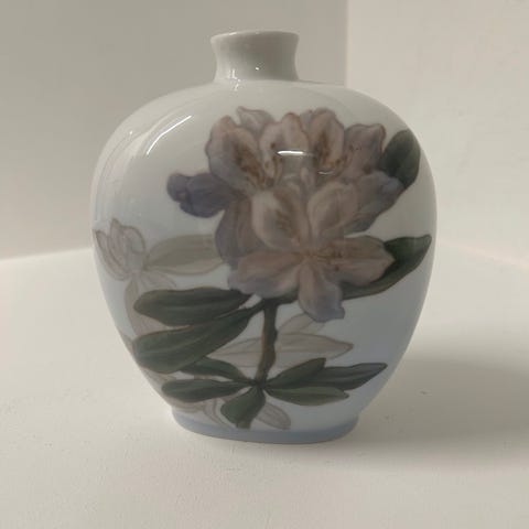 Vasen er rund med en glat overflade og håndmalede blomster- og bladmotiver.,Afhentes i:,Røde Kors Glostrup (161),Bemærk at mail, chat og beskeder ikke besvares, og varen skal købes på knappen "Gå til varen"