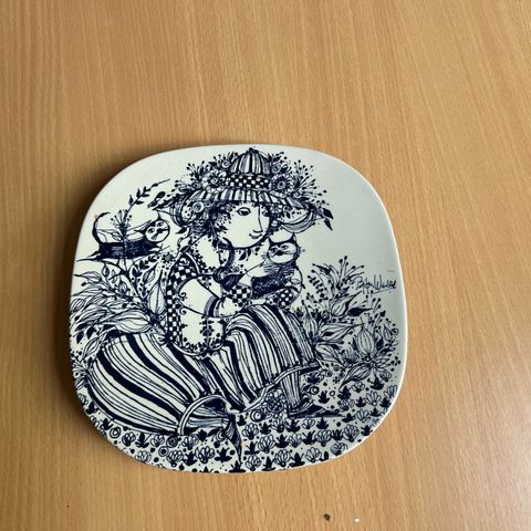 Bjørn Wiinblad platte med dekoration af 2 personer på skøjter,Afhentes i:,Røde Kors Glostrup (161),Bemærk at mail, chat og beskeder ikke besvares, og varen skal købes på knappen "Gå til varen"
