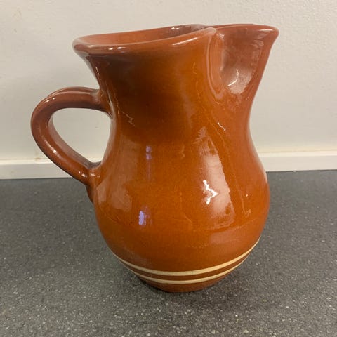 Kanden har detaljerede dekorationer og en farverig overflade. Keramik.,Afhentes i:,Røde Kors Glostrup (161),Bemærk at mail, chat og beskeder ikke besvares, og varen skal købes på knappen "Gå til varen"