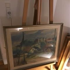 Akvarel på papir, signeret Eiler Wangel 60 (1960) Motiv: 24 x 31,5 cm. Indrammet bag glas, mål med ramme 33 x 40 cm. Opsat på bagbeklædning med brunlige pletter. Selve akvarellen er i fin stand med kraftige farver. Rammen lidt ustabil, med afskalning i øverste venstre hjørne. Indrammet i Fredericia. Kan sendes for kr. 50 til pakkestation.