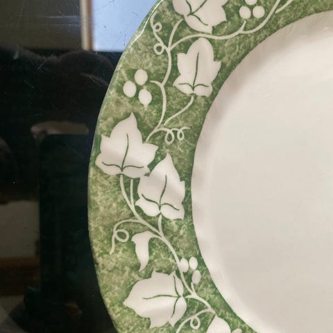 smukke, herlige tallerkener med motiver af jordbær, blade og blomster.