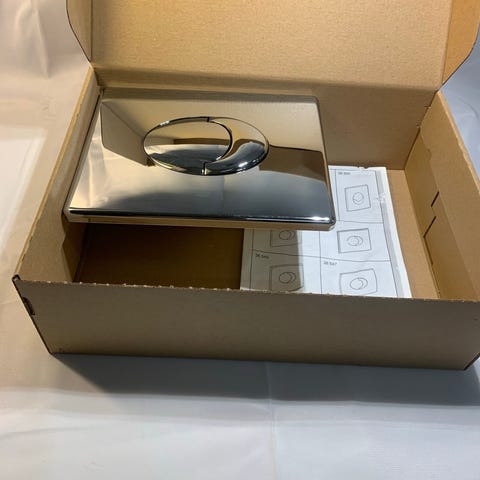 , medfulgte med et toilet, men jeg købte en med messingfarvet tryknap. Så spar lidt penge ved at købe den her