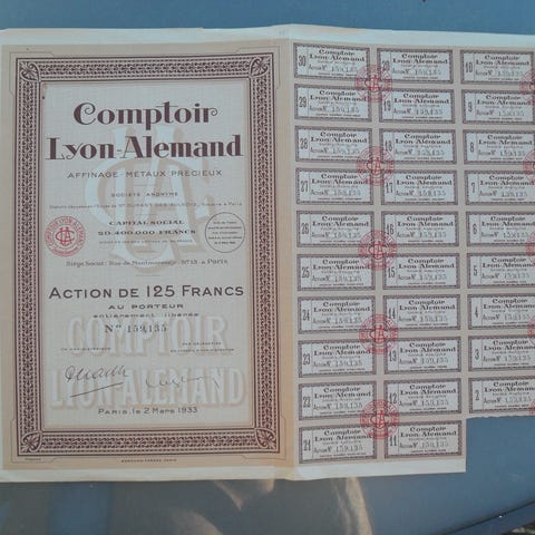 Flotte sjældne aktier over 100 år gamle fra Aktieselskabet Venstrepresse med aktie kuponer fra årene 1922-1943 i pæn stand alder taget i betragtning.