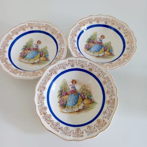 5 middagstallerkener / flade tallerkener af fajance fra engelske J & G Meakin.