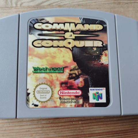 Nintendo 64 Command & Conquer spil med original emballage, manual og spilpatron. Spillet er i tysk version og tilhører kategorien strategi/krigs spil. Passer til Nintendo 64 konsol.
