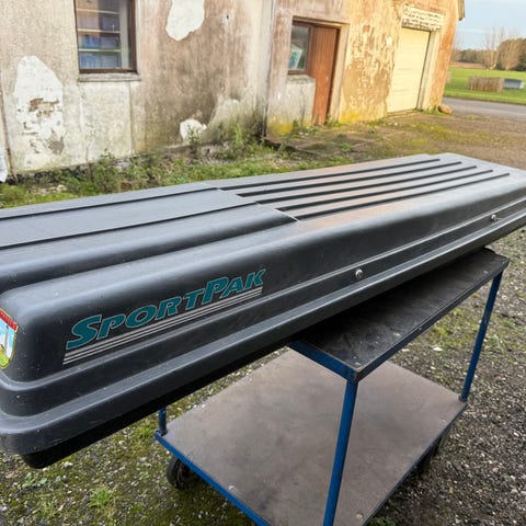 Tagboks med nøgle, fin stand, helt tæt og med plads til feriegrej, skiudstyr mm.